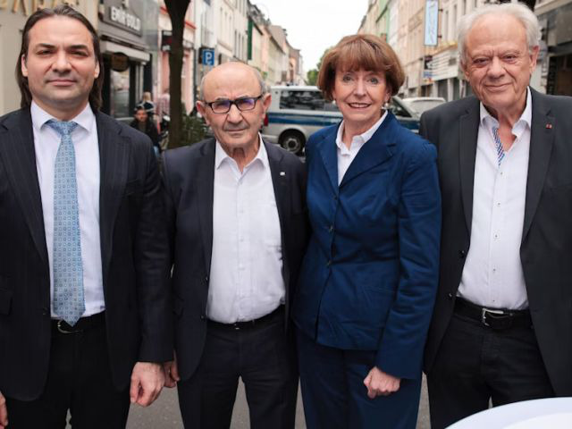 Auf der Keupstraße: Hüseyin Kantem Al, Generalkonsul, Tayfun Keltek, Integrationsbeauftragter der Stadt, OB Henriette Reker, Norbert Fuchs, Bezirksbürgermeister (Bild Dirk Borm)