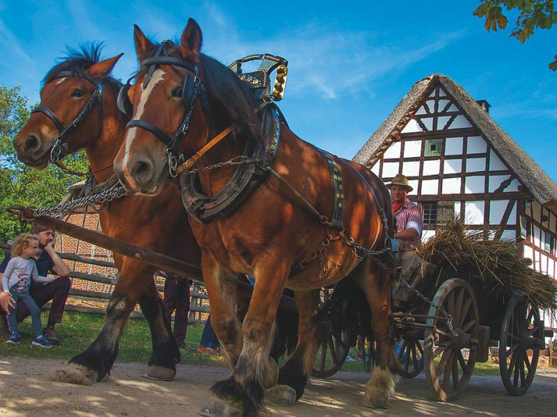 Kommern - Am Samstag, den 20. und Sonntag, den 21. September 2025 gibt es im LVR-Freilichtmuseum Kommern viel zu tun. Schwere Rösser pflügen und eggen oder fahren Getreidewagen zum historischen Bauernhof.